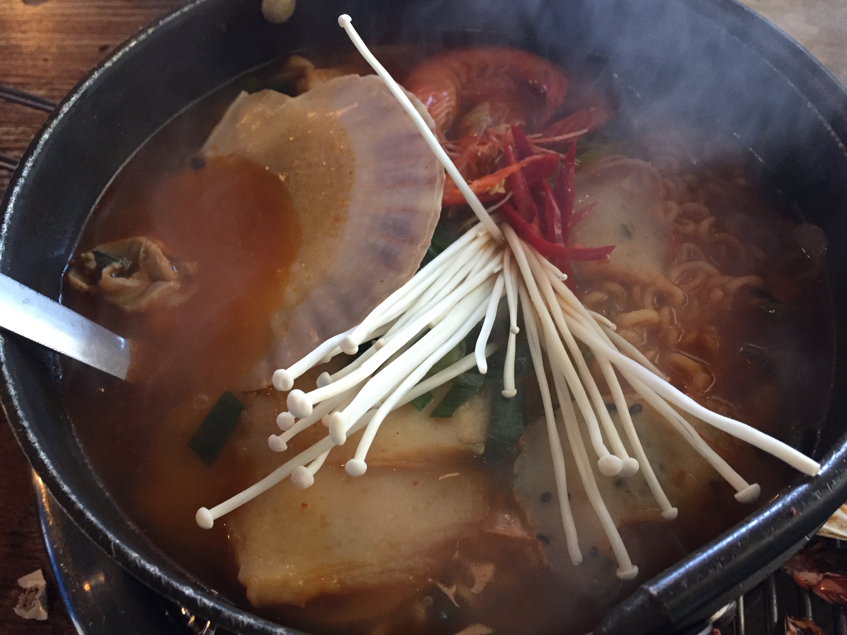 새우까지 야무지게 구워먹고, 마무리는 해물라면으로.