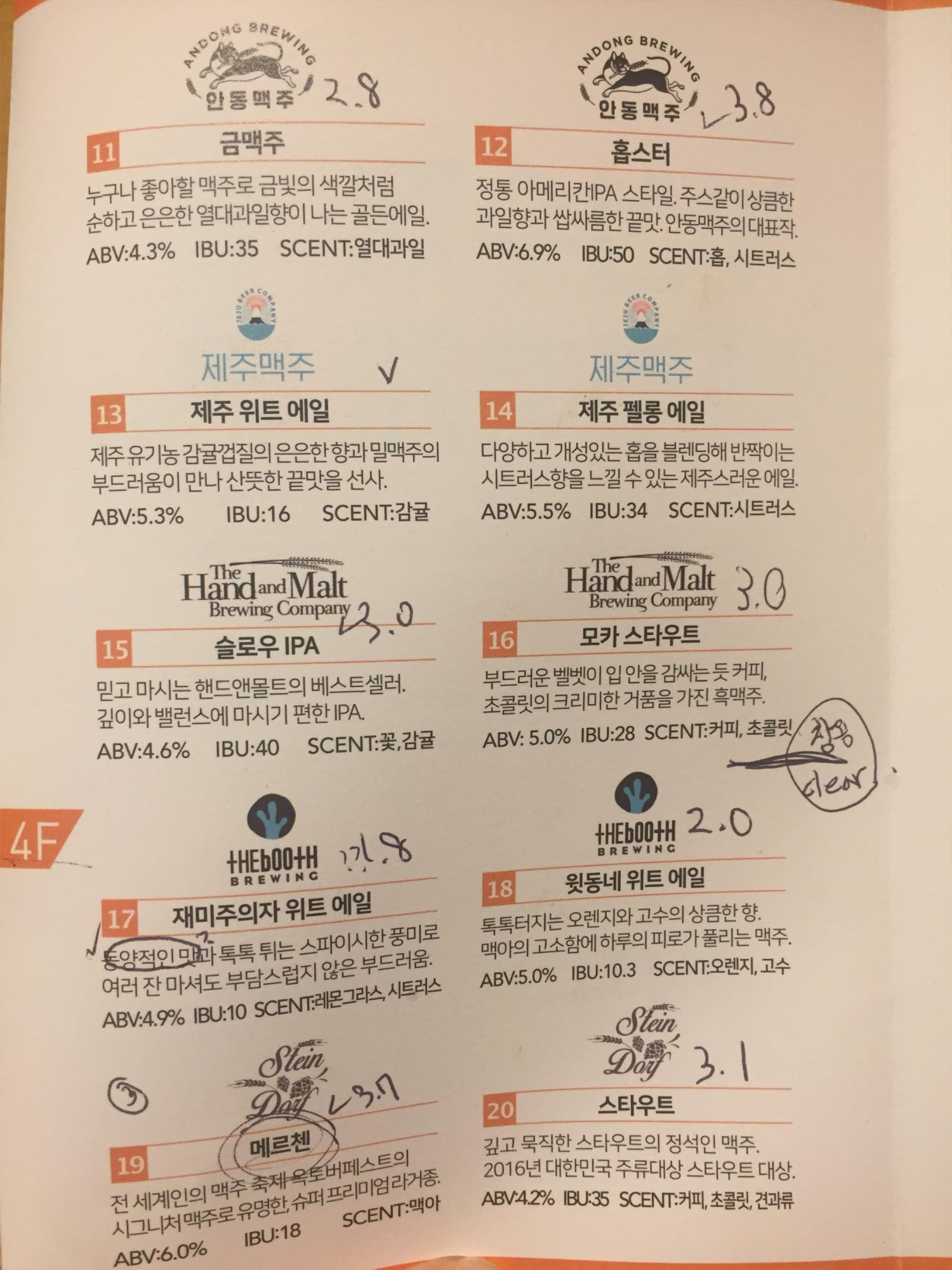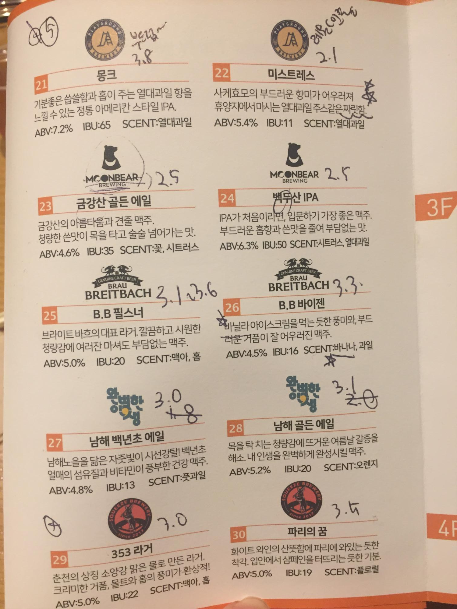 최고점은 '세종드세글'. 이 맥주를 제일 처음 선택해 마셨다. 그래서 기준이 4점이었는데, 이후 내입에 그보다 더 맛있는 맥주는 없었다. 음 3점 이상이면 내입에 맛있는 맥주였던 것 같다.