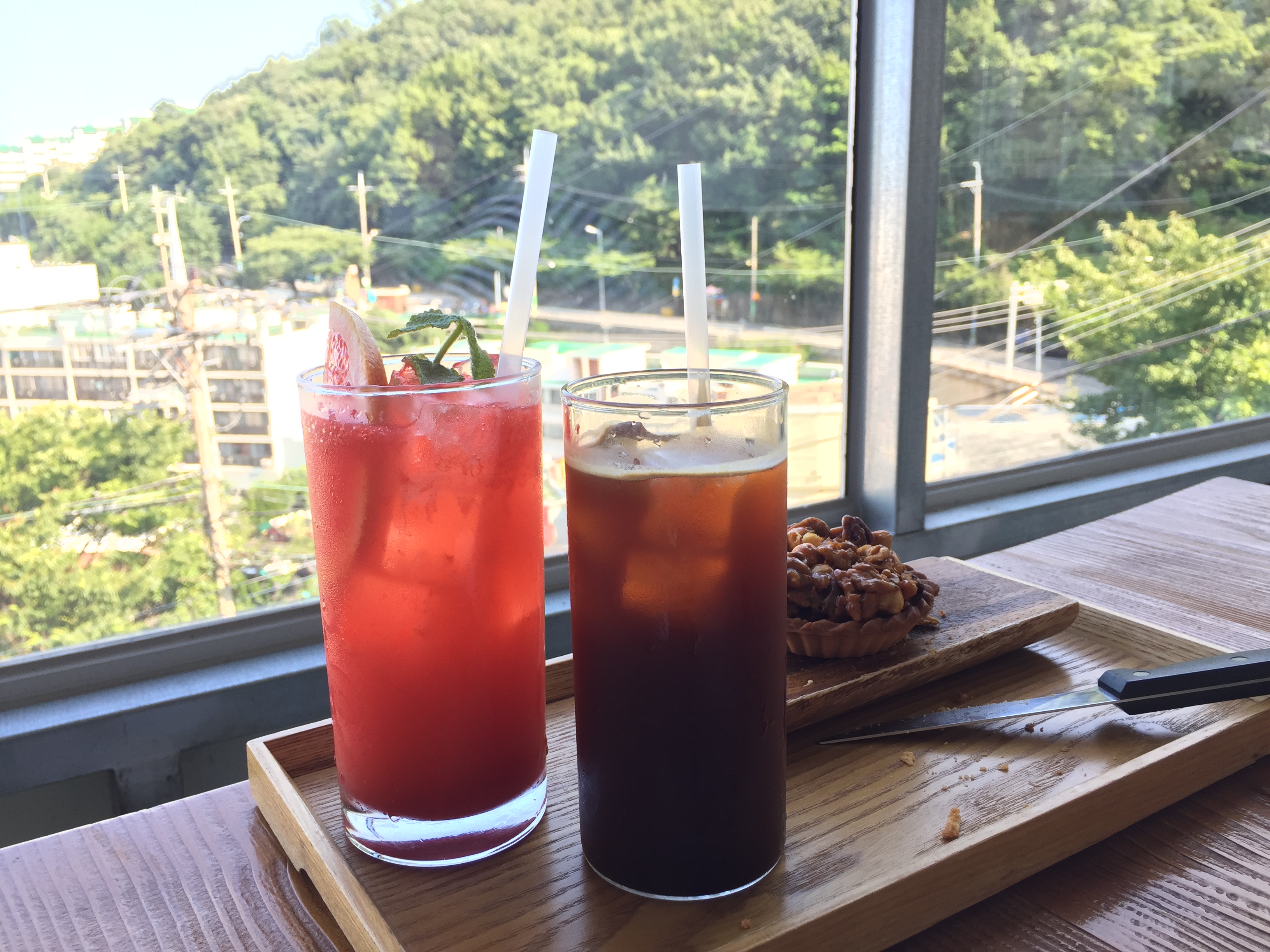 동생은 전에 한 번 왔었다고 했다. 나는 처음이었는데, 들어서자마자 넓은 창으로 보이는 초량동의 모습에 놀랐다. 그리고 시원스러운 공간도 좋았다.