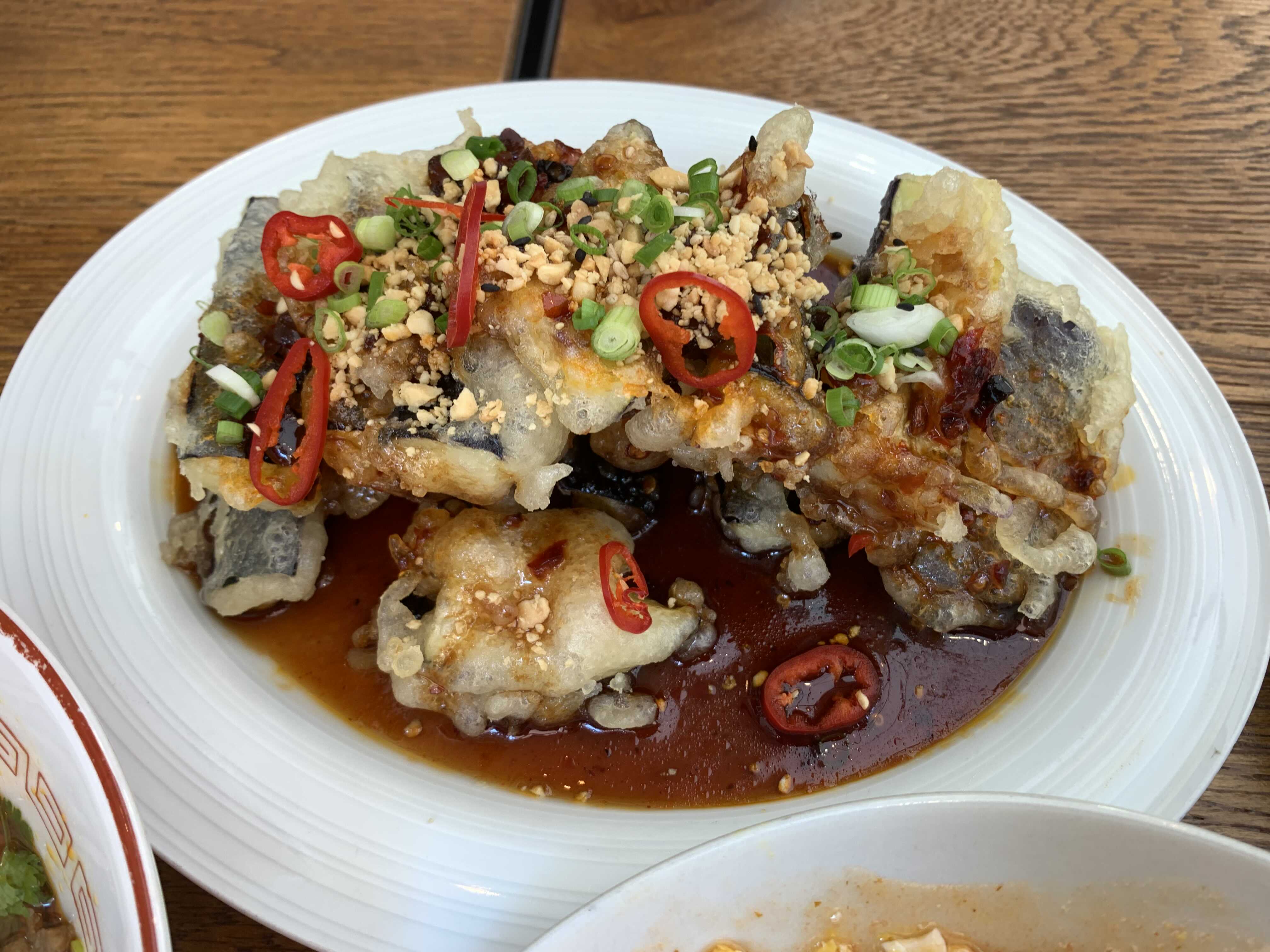 처음 입에 넣었을 때 바삭한 튀김옷도 가지 튀김에 살짝 묻은 소스도 짭조름해서 좋았다. 고소한 땅콩 토핑도 같이 먹어야 한다.