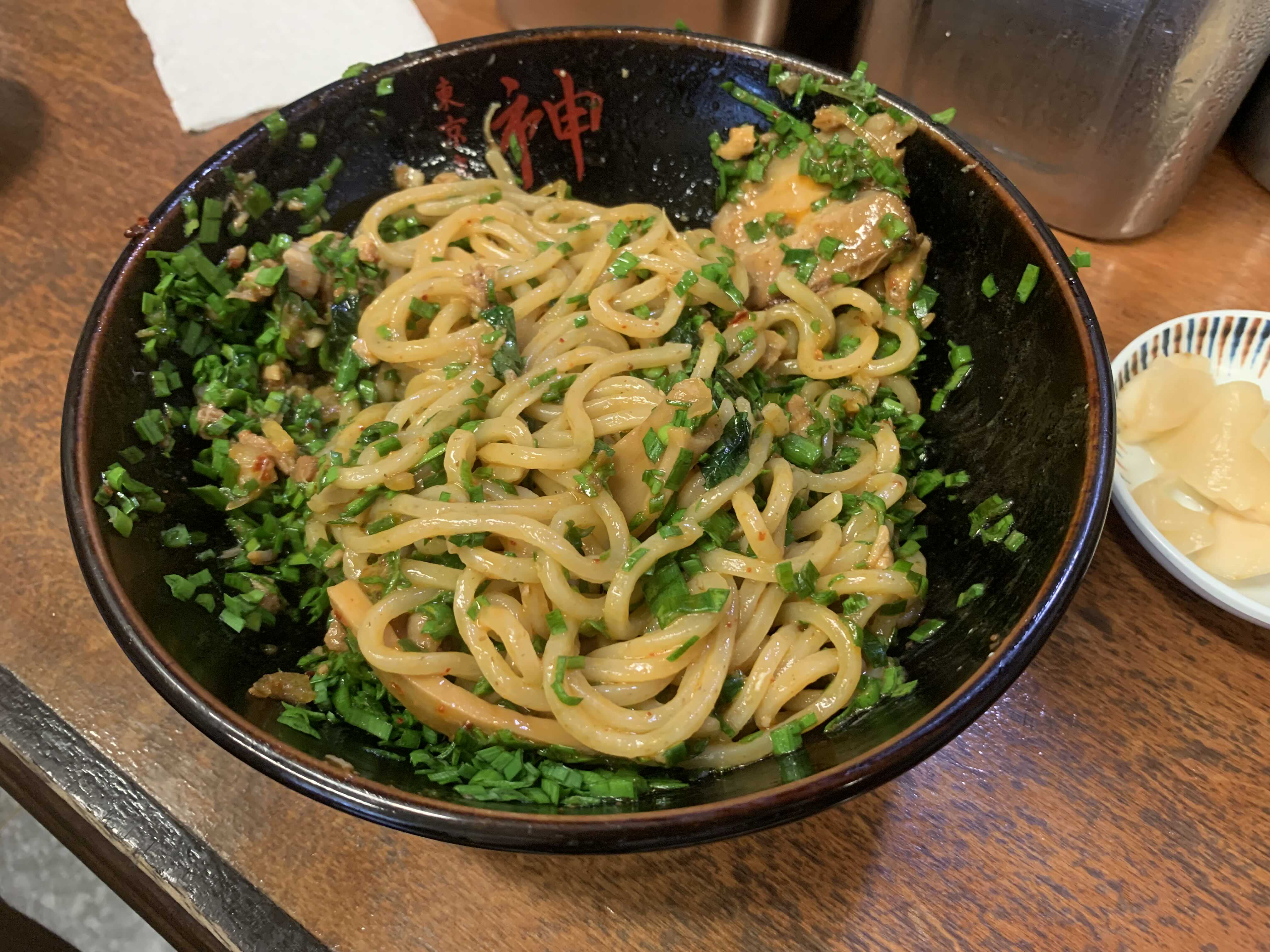마제소바, 아부라소바 한 번쯤 먹어볼 만한 맛이다. 큰 호불호 없이 먹을 수 있을 것 같다. 일반적인 국물 라멘은 국물이 느끼해서 싫어하는 사람도 있는데, 이건 그런 느끼함은 없다. 육수를 낸 국물이 없으니 당연히 덜 느끼할 수밖에. 물론 비빔 라멘의 면을 익힐 때는 어떤 육수에 내는지 모르겠지만, 국물 라멘보다는 확실히 덜 느끼하다.