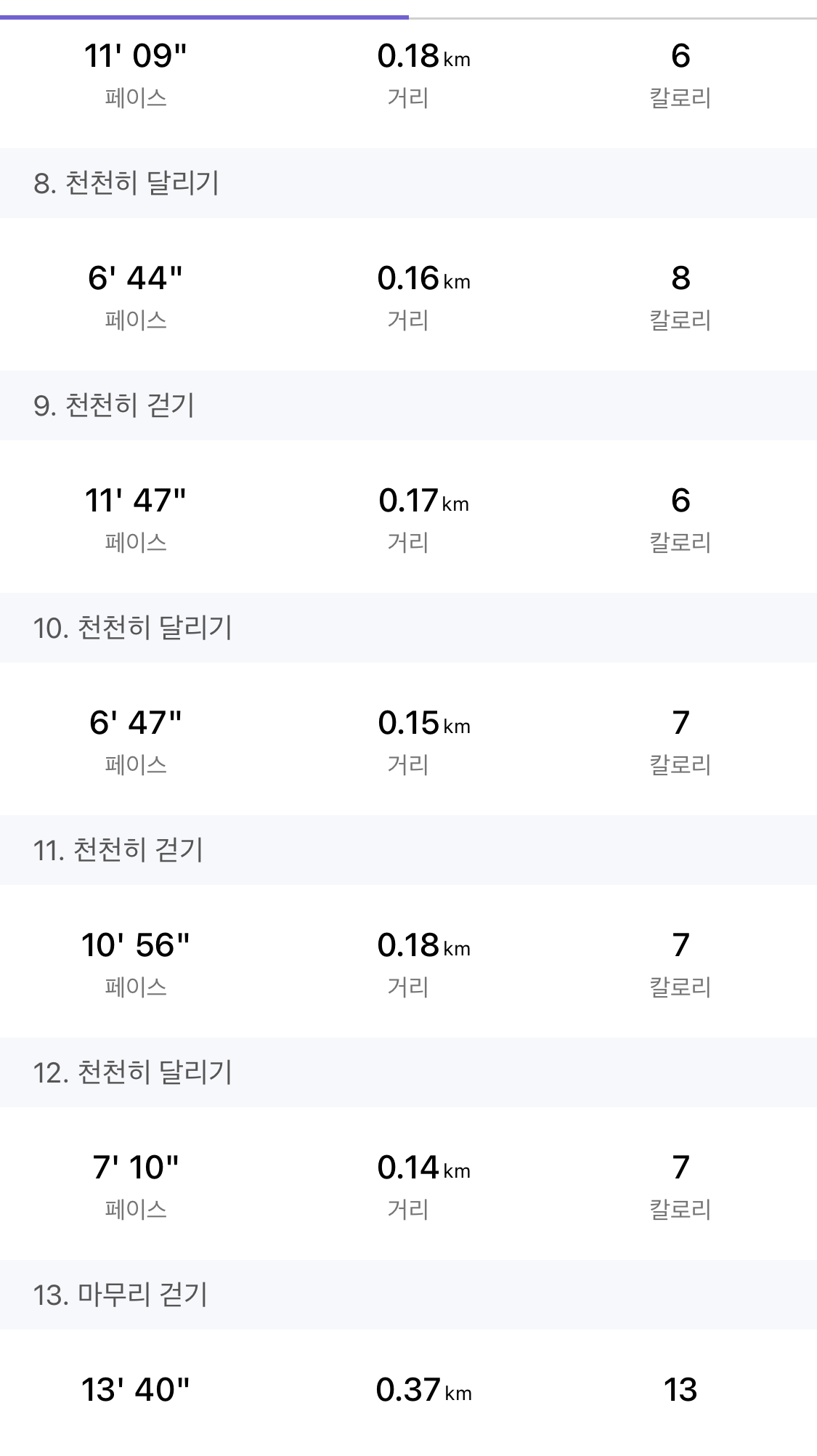그리고 초반 코스는 뛰는 시간이 짧아서, 첫 단계로 돌아가지 않고 1주 2회차 그대로 진행했다.