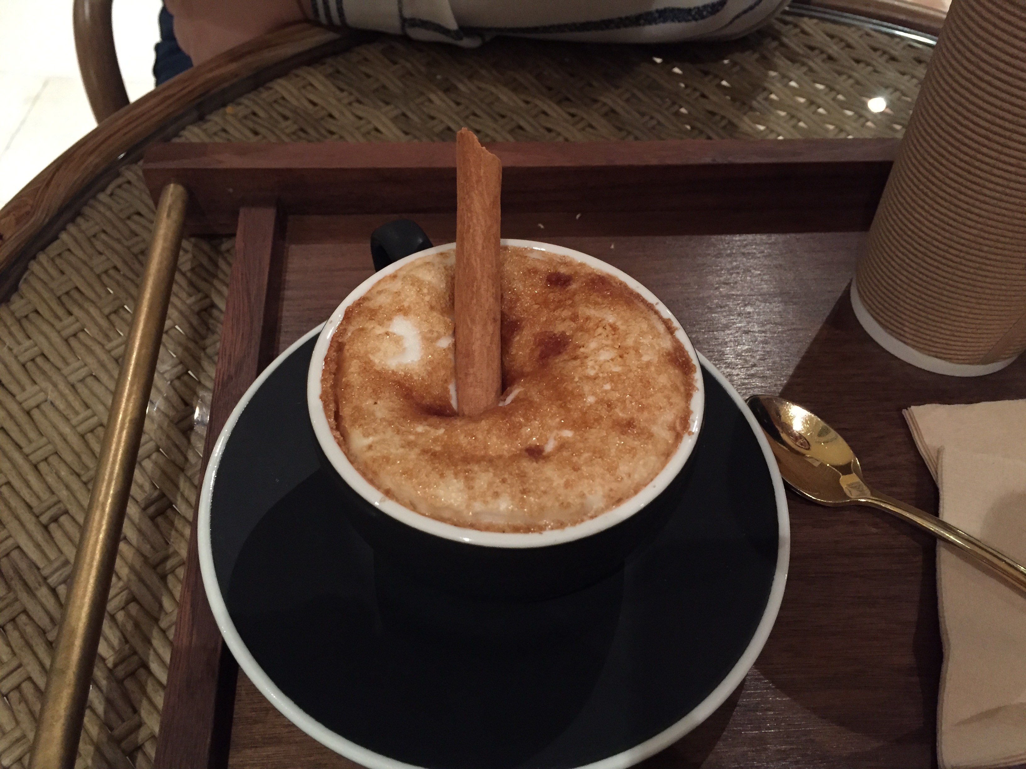 시나몬 스틱을 따로 주고 마실 때 저어서(?) 넣어 마시라고 한 카페 브륄레.