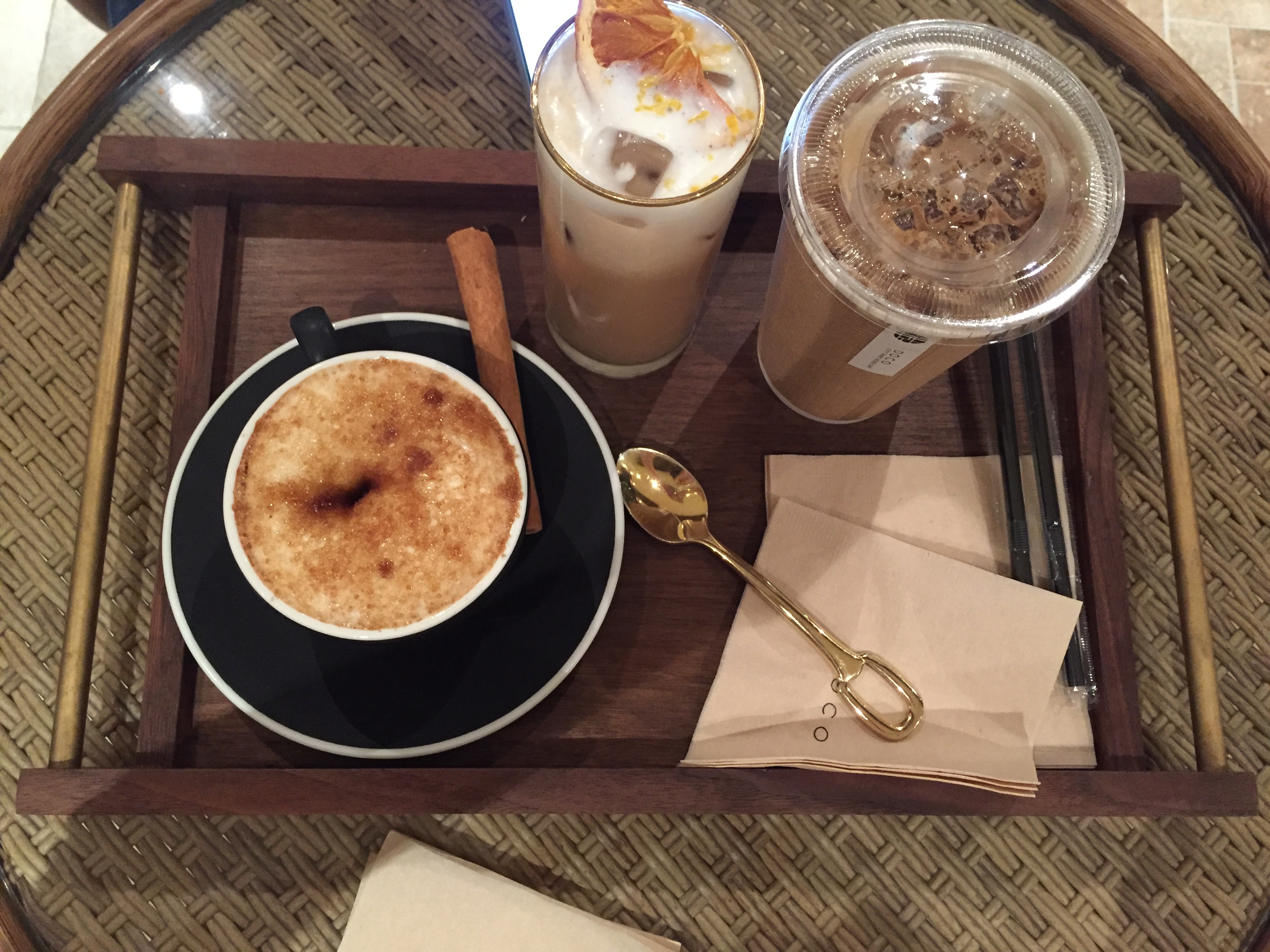 주문은 각자 마시고 싶은 걸로, 카페 브륄레, 아이스 라테, 단미 연유 라테.