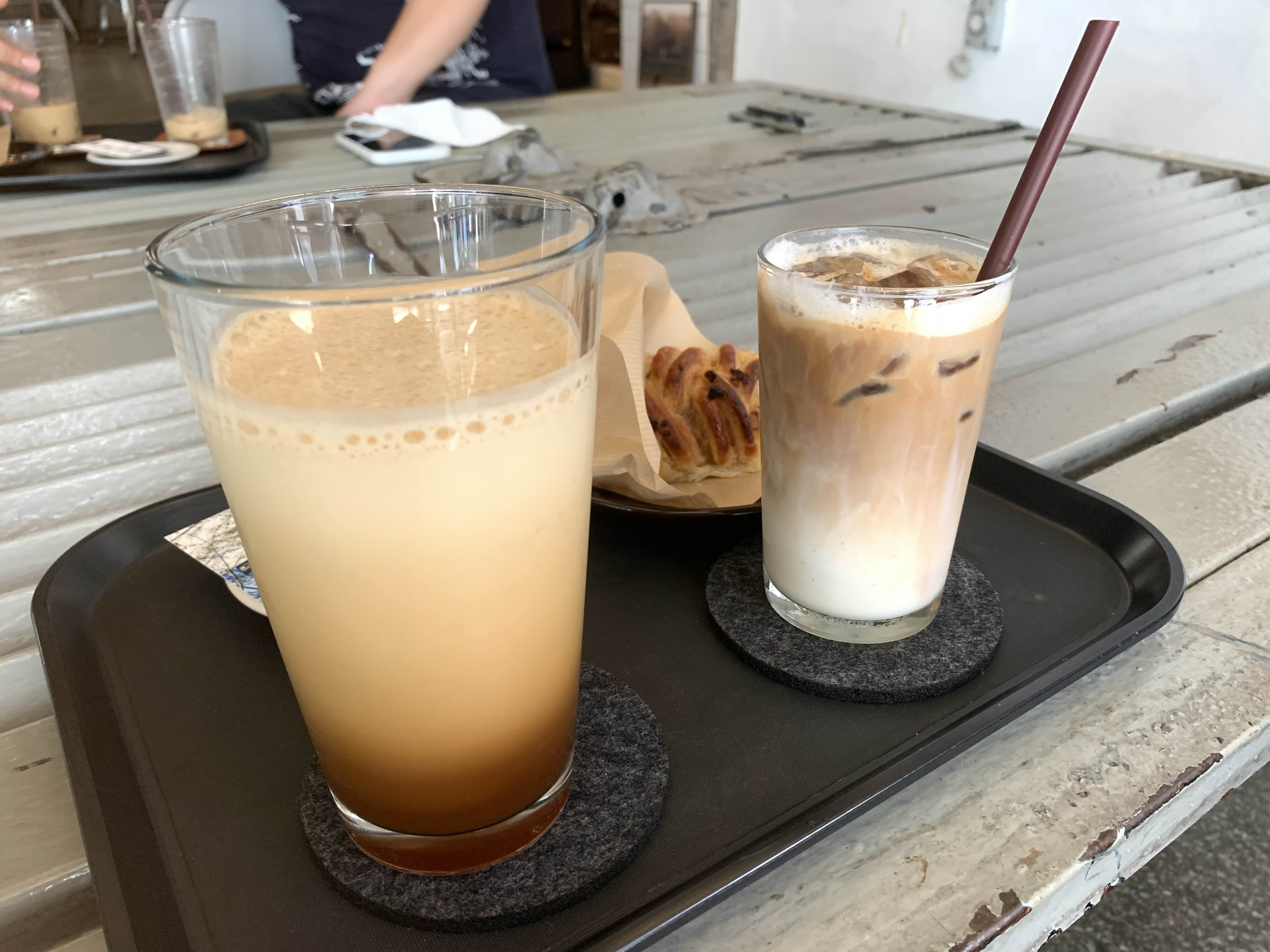 늦은 오후에 마신 카페인은 밤 늦게까지 잠 못 들게 괴롭힌다. 그런데 '디카페인 가능'이라니! 기쁜 마음으로 드라우트를 주문했다. 흑맥주를 표방한 커피라니! 이것도 구미가 당긴다. 친구는 아몬드 라테를 주문했다.