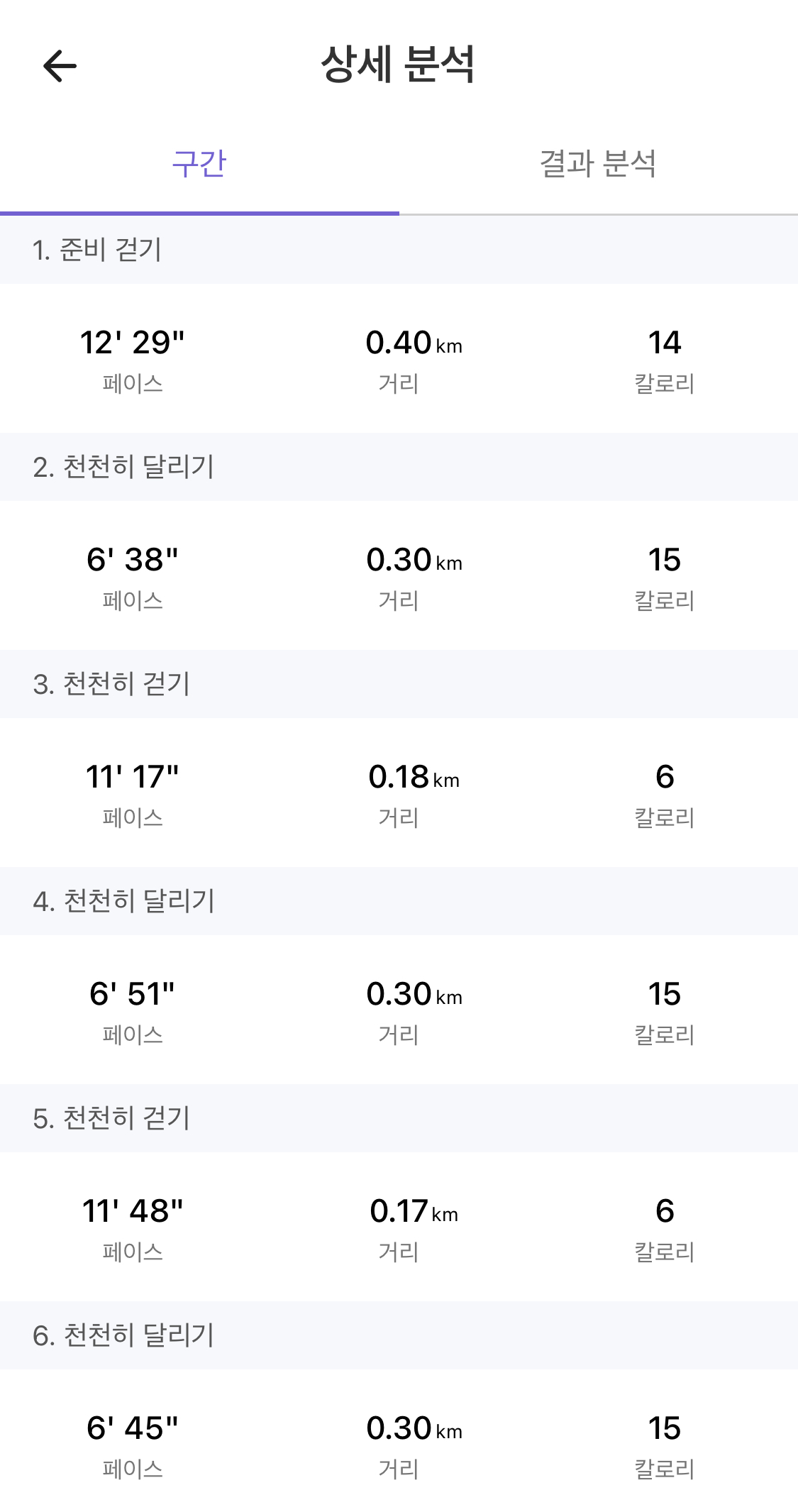 천천히 달리기 2분 x 5회