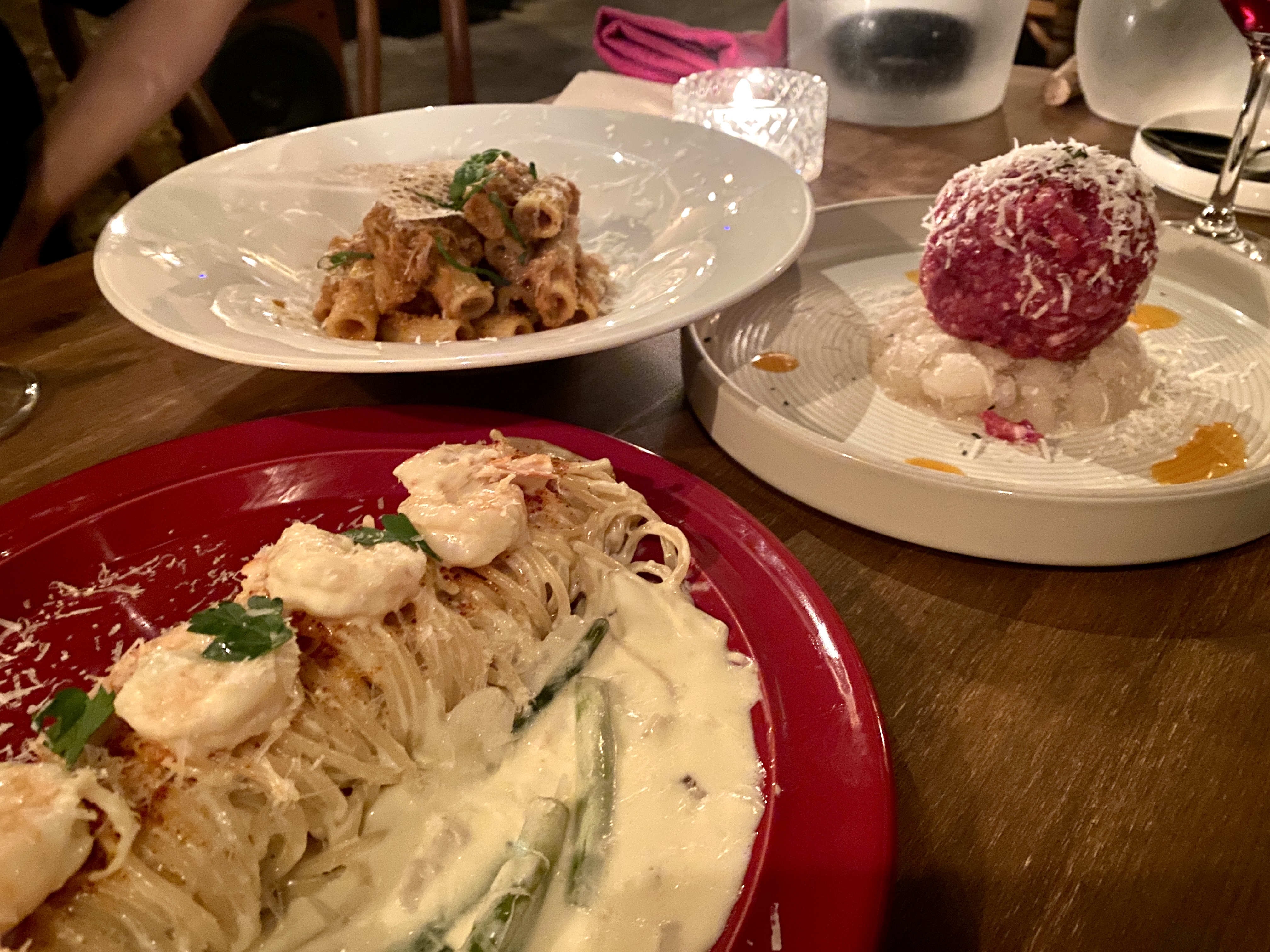새우크림파스타와 라구파스타, 그리고 토끼굴의 시그니처! 한우타르타르.