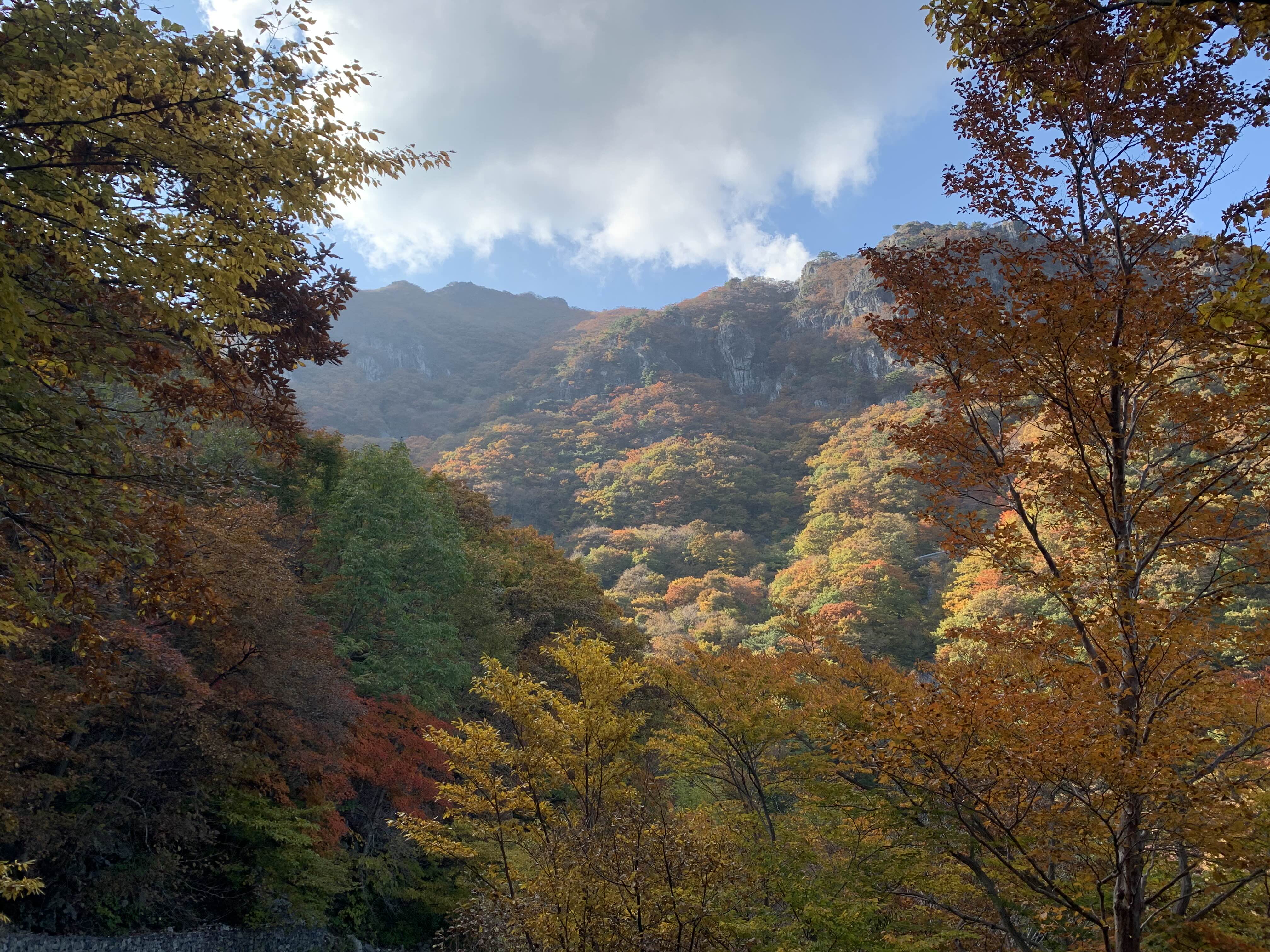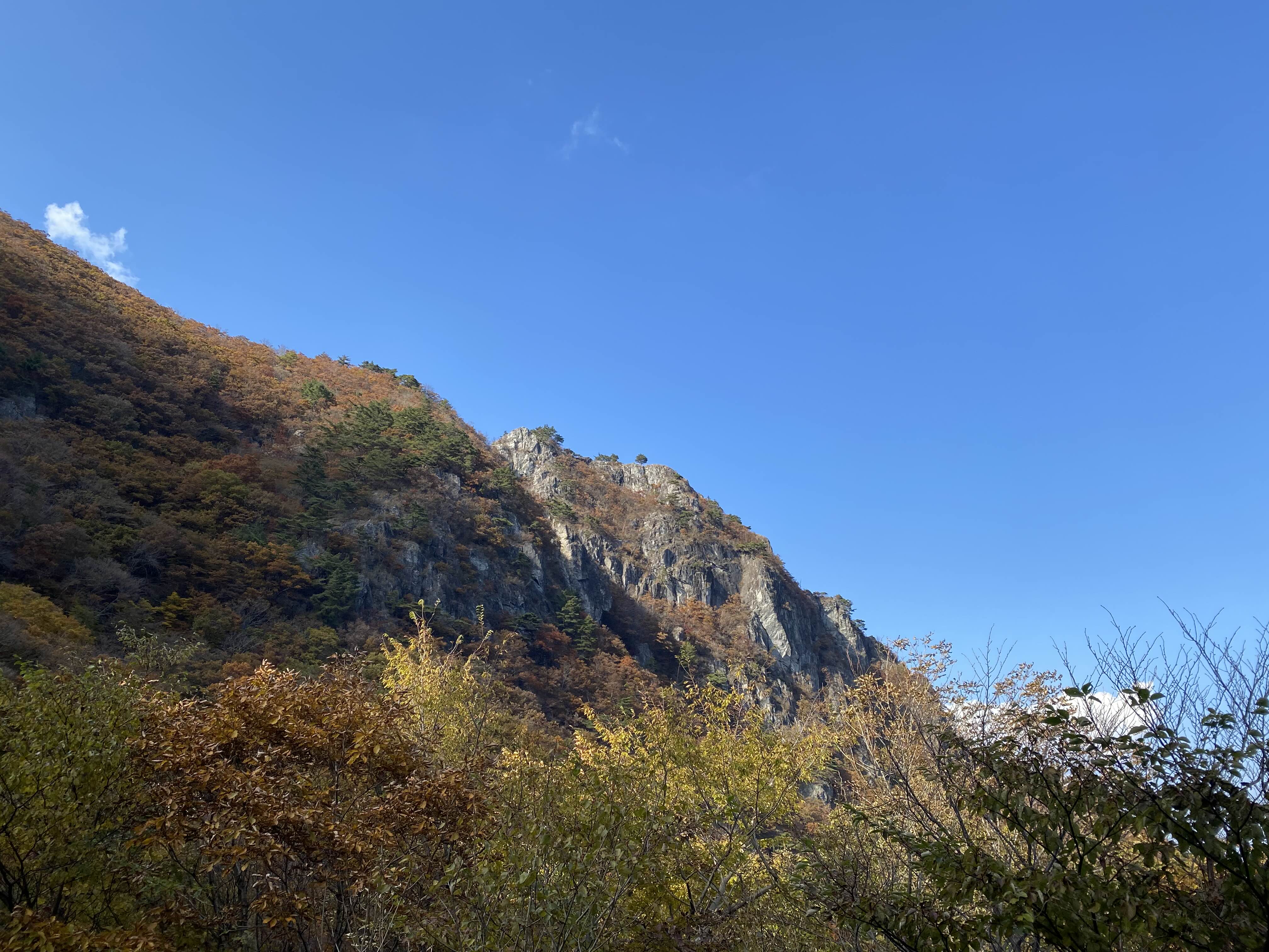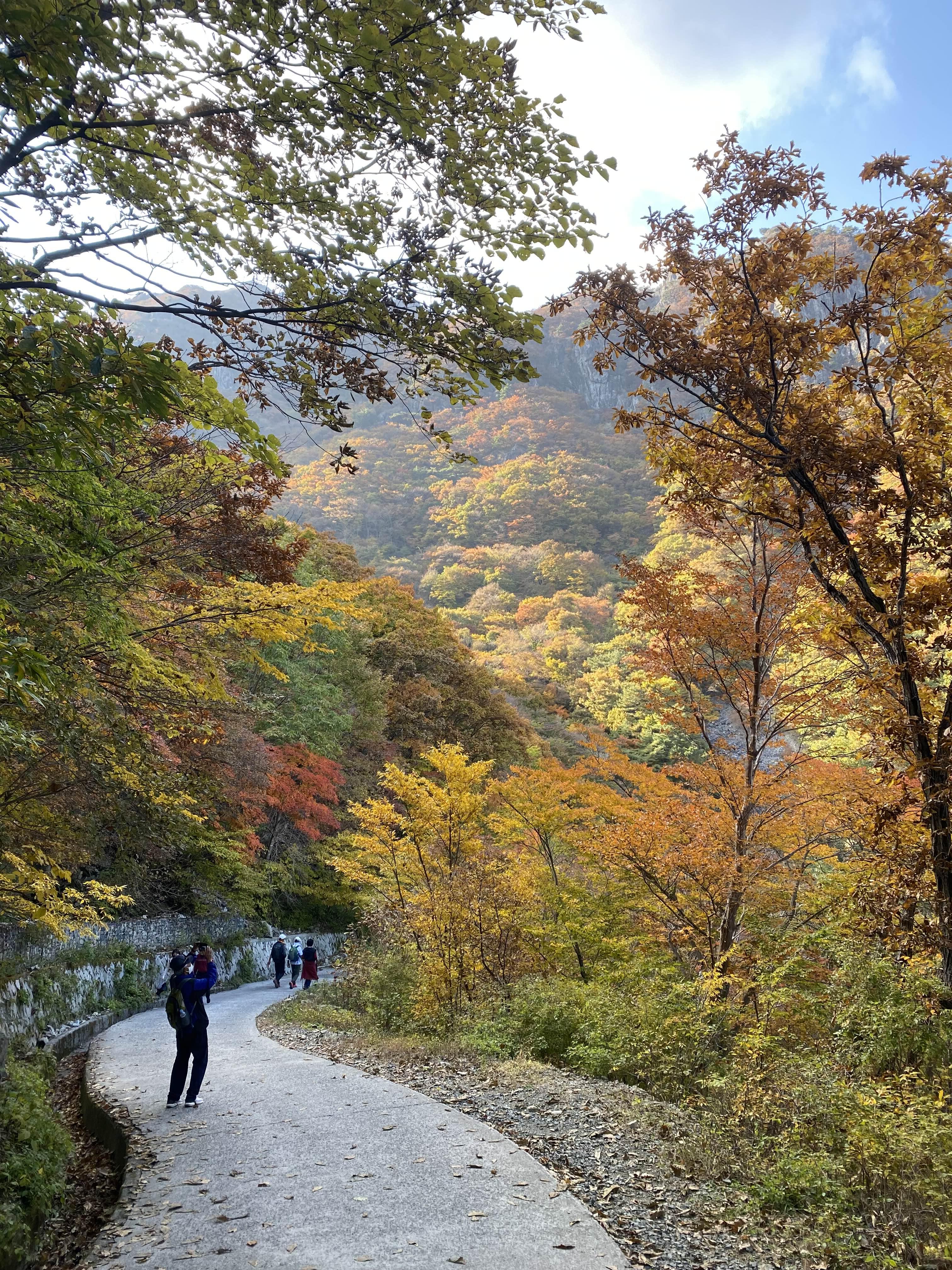 우리는 간월산 정상은 뒤로하고 억새를 배경으로 사진을 찍은 뒤, 임도로 내려왔다. 임도는 어찌나 편한지, 여태껏 못 본 가을 산의 모습이 눈에 보였다.