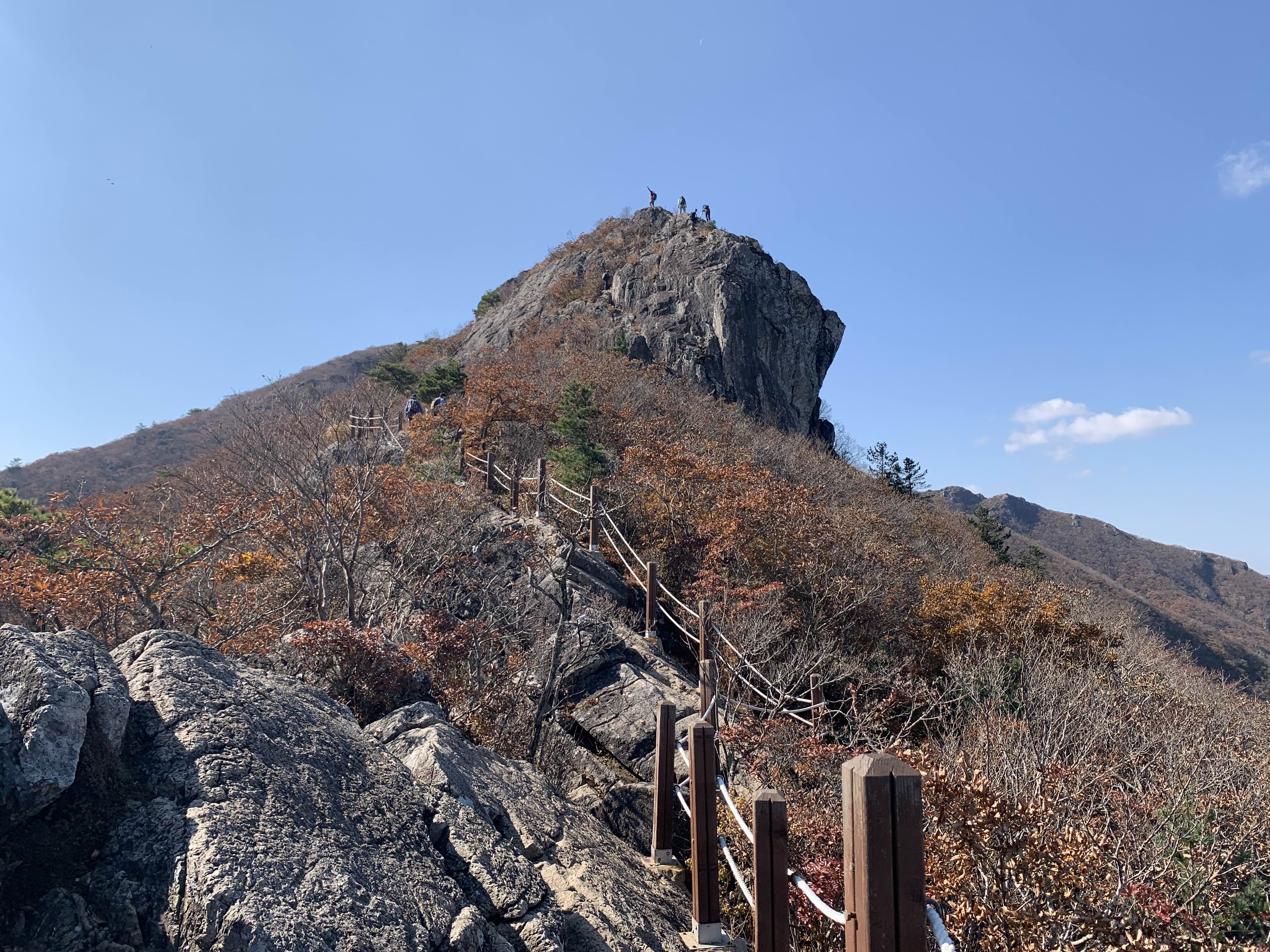 하지만 그다음이 문제였다. 정말 정말 말 그대로 칼바위여서 엄두가 안 났다. 😭 이미 되돌아갈 수도 없을 만큼 지나왔기에 어쩔 수 없었다. 그래도 왼쪽으로 우회로가 있었는데, 거길 가는 것조차 무서웠다. 그날따라 유난히도 내 다리는 짧았고, 돌벽은 길기만 했다. 이미 먼저 가있는 친구와 나를 지나쳐가는 몇몇의 등산객들을 보며, 겁을 삼켰다.