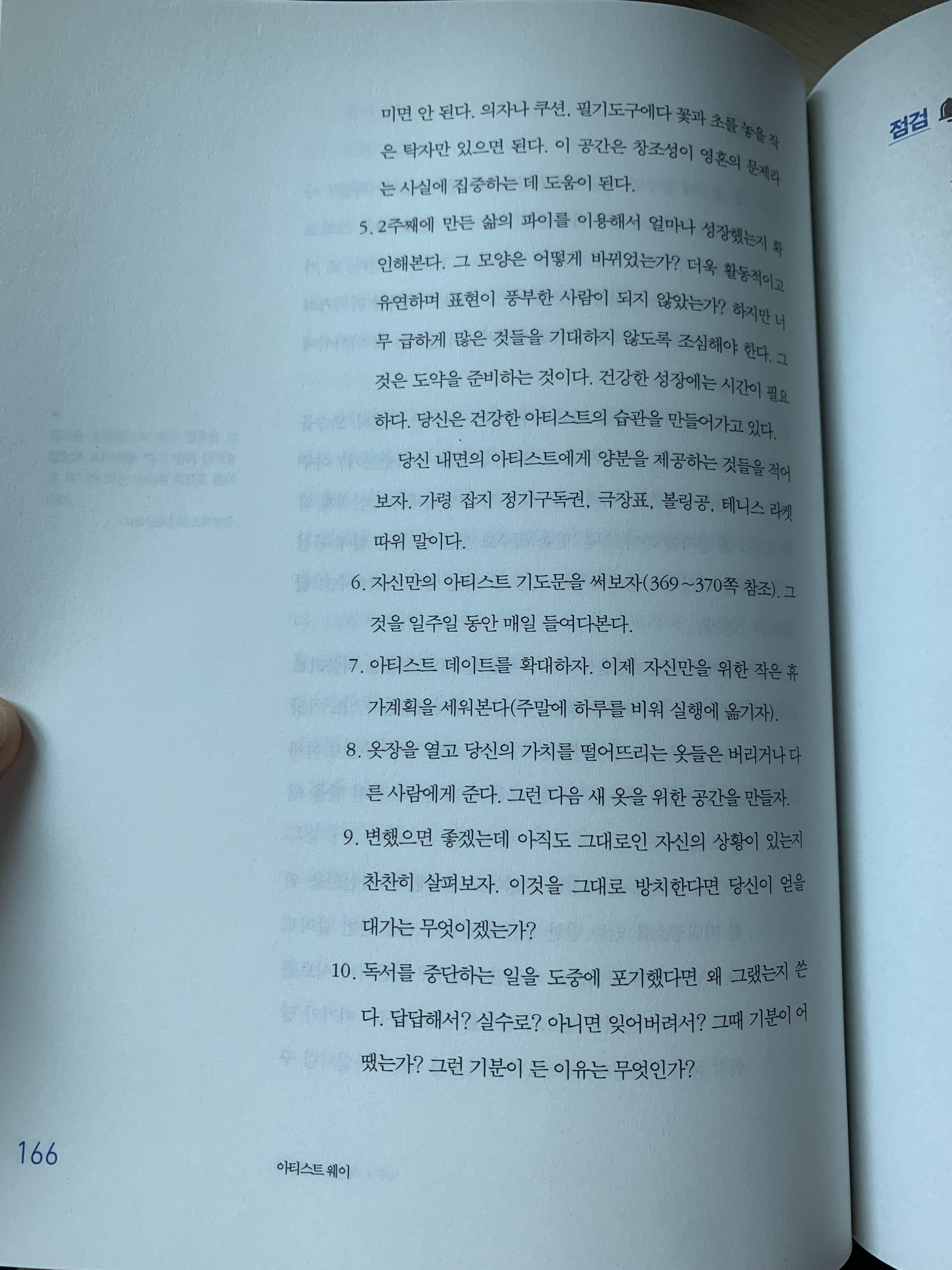 2. 아티스트 데이트를 하지 못했다. 무어에 집중을 했던가..?