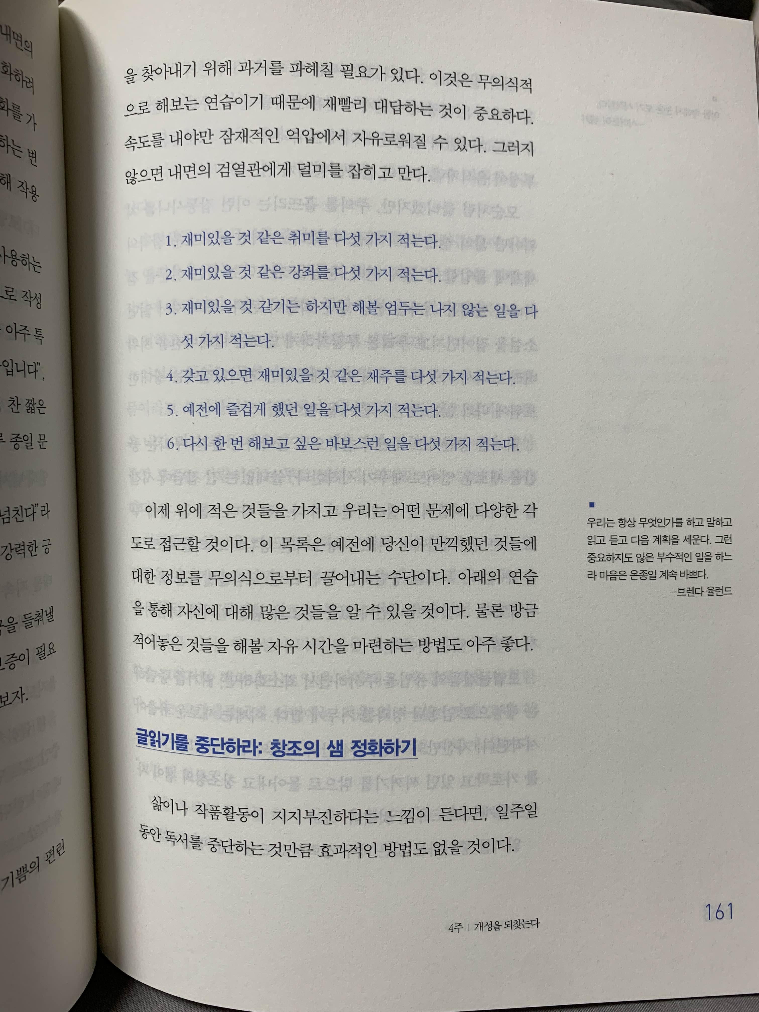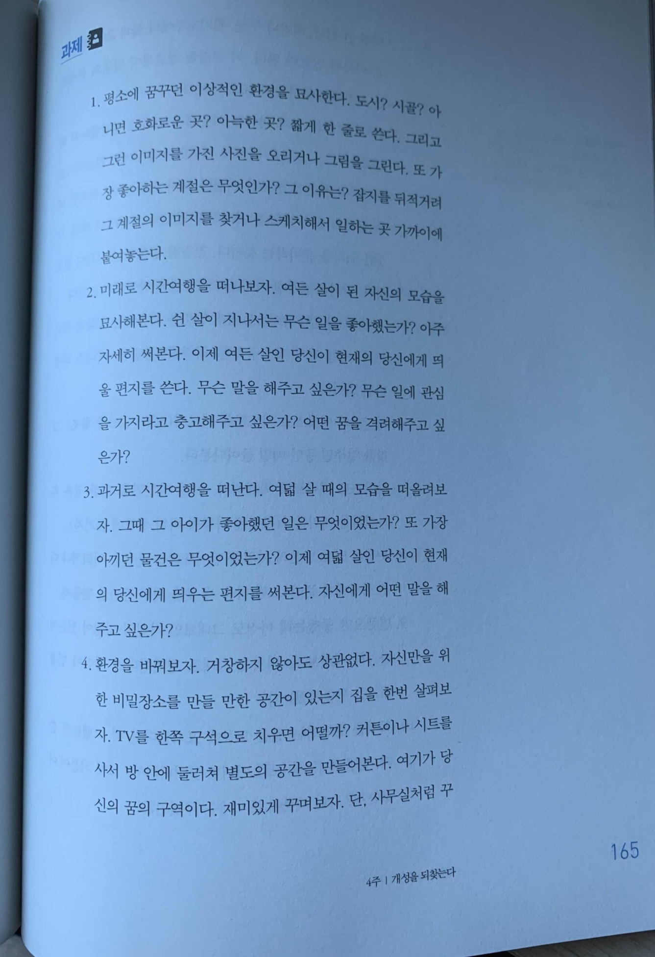 | <아티스트 웨이> 모닝페이지 2주_정체성을 되찾는다(과제, 점검) (4) | 2021.10.19 |