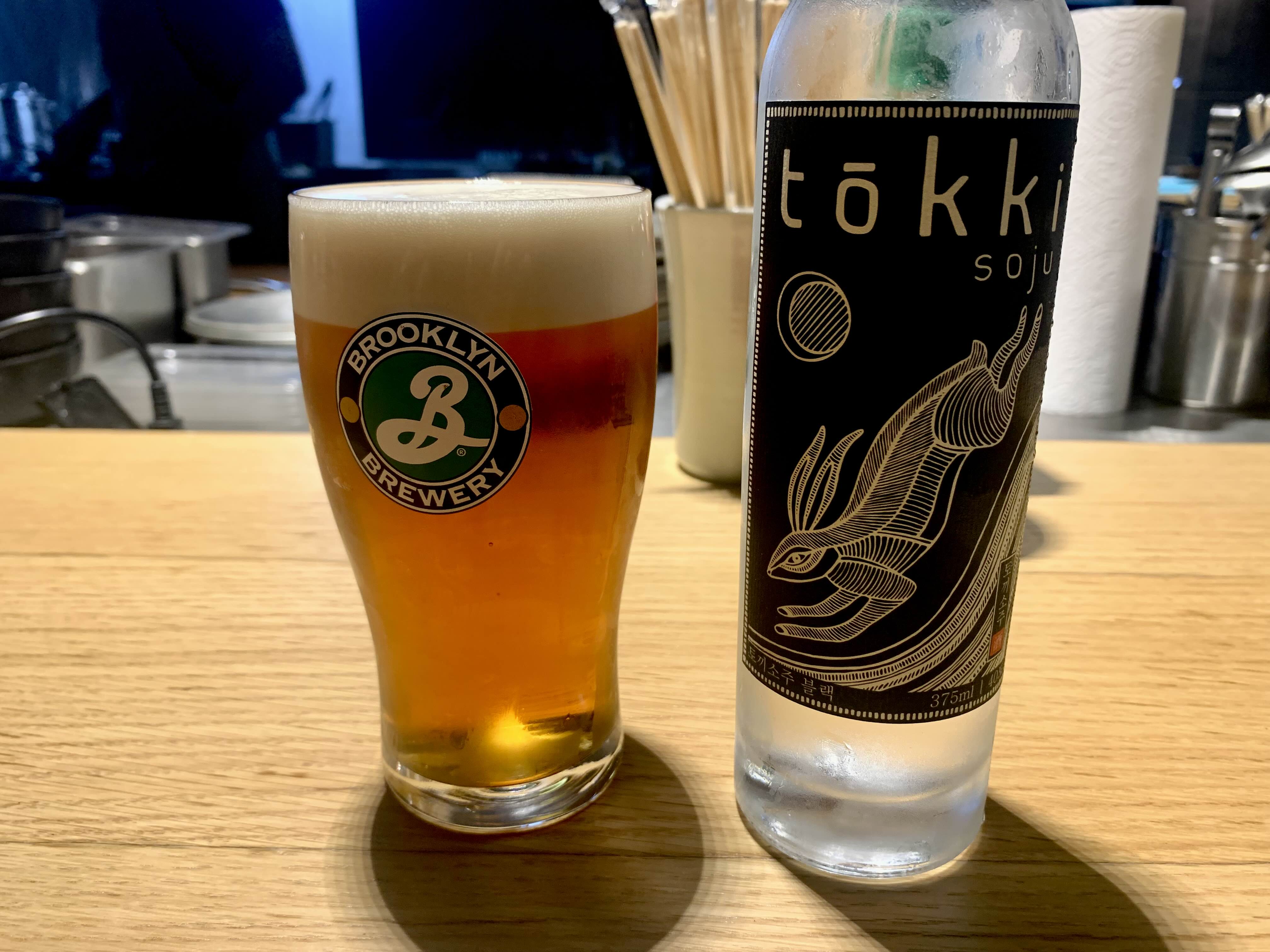 메뉴를 보고 정말 오래오래(?) 고민한 끝에 술과 안주를 골랐다. 술은 와인이 아니면 몇 종류 없었기에 라거 한잔과 '토끼 소주'라는 것을 주문했다.