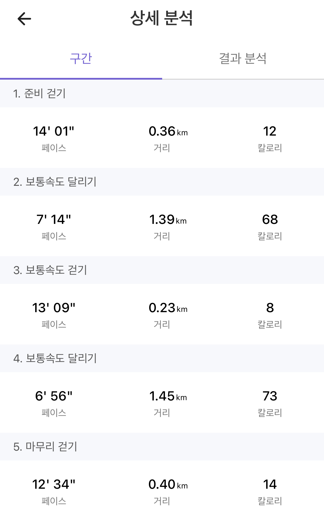 보통 속도 달리기 10분 x 2회