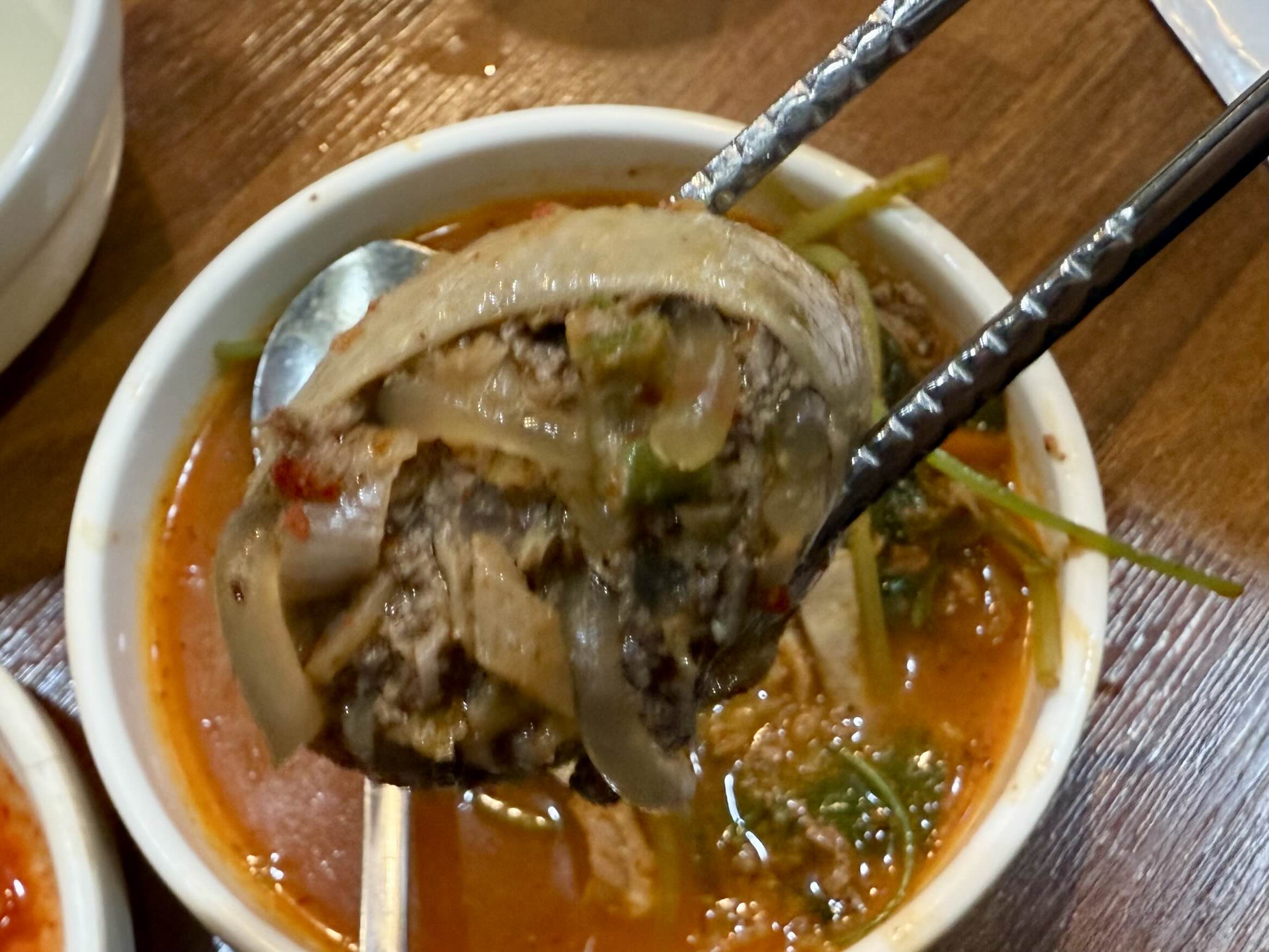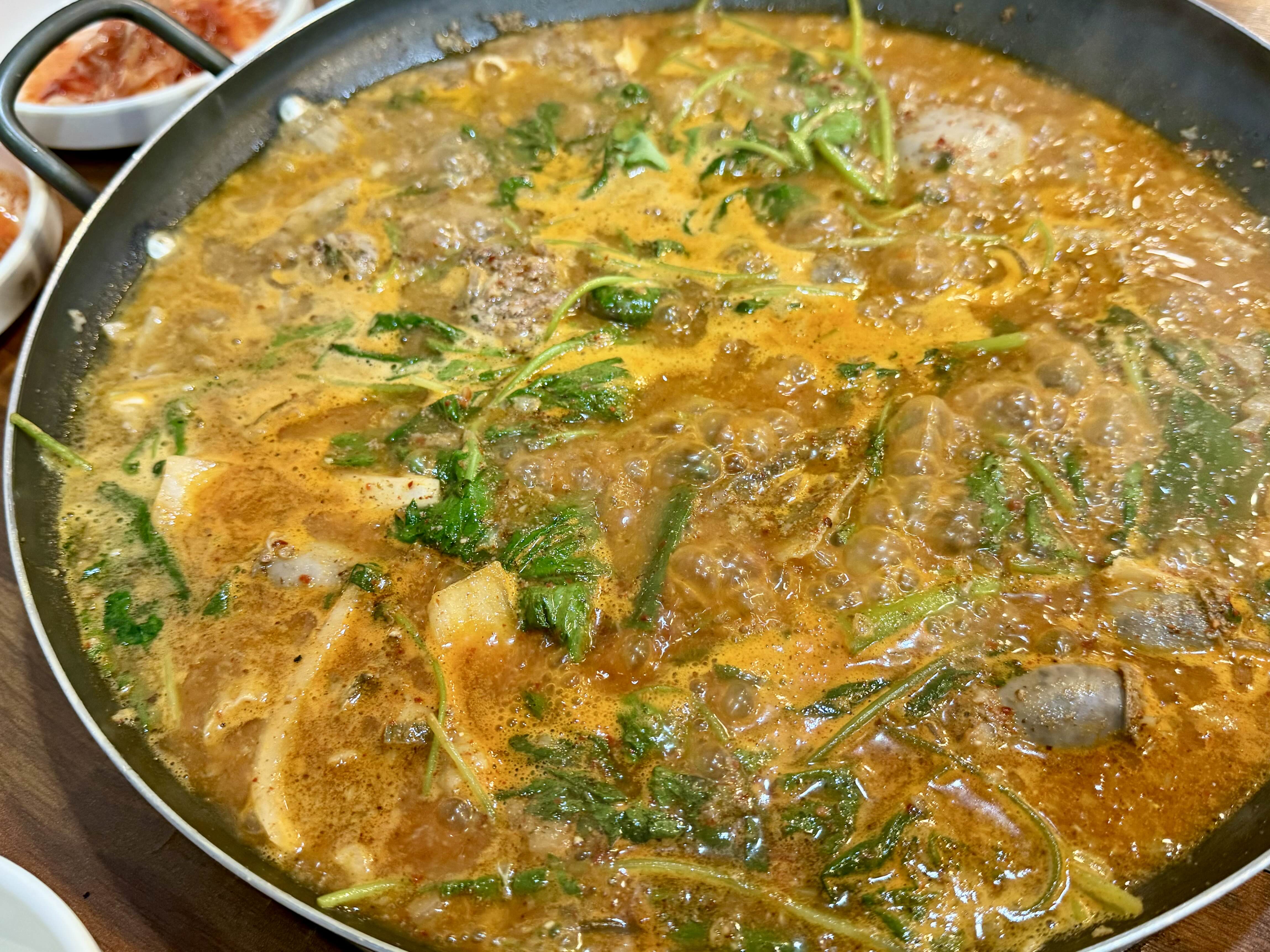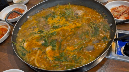 전골에는 돼지곱창, 오소리감투, 내장 등이 들어가 다양한 식감을 느낄 수 있으며, 전골의 깊은 맛 덕분에 한 번 맛보면 자꾸 생각나는 매력이 있습니다. 자극적이지 않고 간이 적당하여 어르신과 가족 단위 방문객들에게도 인기가 많은 것 같습니다.